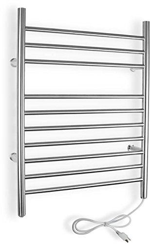 Description: Timer included. Beautiful and functional. Superior quality metals. Hand finished for durability and long lasting beauty. Great addition to any bathroom. Made from Stainless Steel. Assembly required. 25.63 in. L x 4.75 in. W x 32 in. H. 2 Year Warranty. The Infinity Towel Warmer by Warmly Yours is truly an upscale design for today's modern bathroom. Imagine your home's master or guest bathroom with this beautiful and functional bathroom accessory, creating that tranquil and relaxing spa atmosphere that you have always dreamed about. Featuring 10 sleek bars that provide ample space for hanging towels or a bathrobe, the Infinity has a graceful profile with a beautiful, skillfully brushed stainless steel finish. You will love stepping out of the shower and wrapping yourself in a warm dry towel to start your day. The Infinity hardwired model is an ideal addition to your bathroom during new construction or as part of a bathroom remodel.
