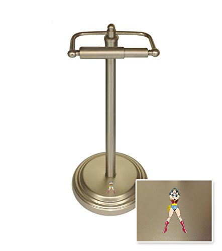 New Brushed Steel Finish Toilet Paper Stand featuring your choice of vinyl decal! (Wonder Woman Standing)