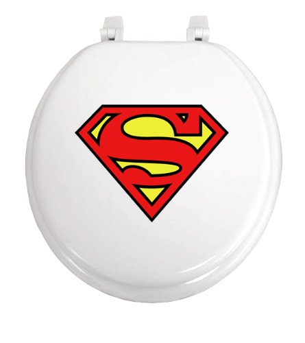New Molded Wood White Finish Toilet Seat featuring Superman Logo