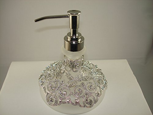 Description: A Stunning Vanity Soap / Lotion Pump / Dispenser Elegant Sterling Silver Floral Ornate Design With Genuine Crystal Embellishment Comes in a Glossy White Gift Box. This item is a perfect gift for this gift giving season and can be given at almost any occasion. Proper cleaning and handling prolongs the life of any decorative functional Housewares(Collections). Perfect counter top display that has purpose and shines with elegance and luster.