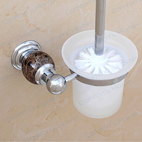 Comfort's Home DLS5507C Modern Wall Mounted Marble Toilet Brush with Holder, Chrome