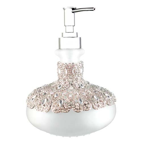Silver Color Nickel Plated Design Soap Dispenser embellished with Crystals HO: 6.5